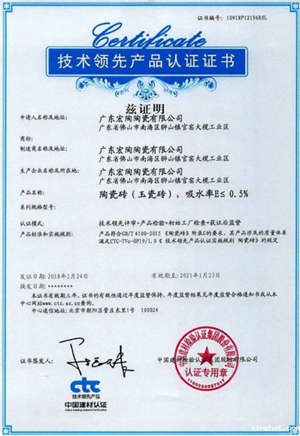 坚守质造二十多年,一直以来宏陶生产标准严格遵守优于国标的企业内控标准。其生产基地全面实施7S管理法,确保出厂产品质量“0缺陷”,每一款产品经受“环保、耐磨、抗折”等多重物理性能的严苛检验,研发生产的多款产品获得权威认可,目前获发明专利45项,实用新型专利29项。